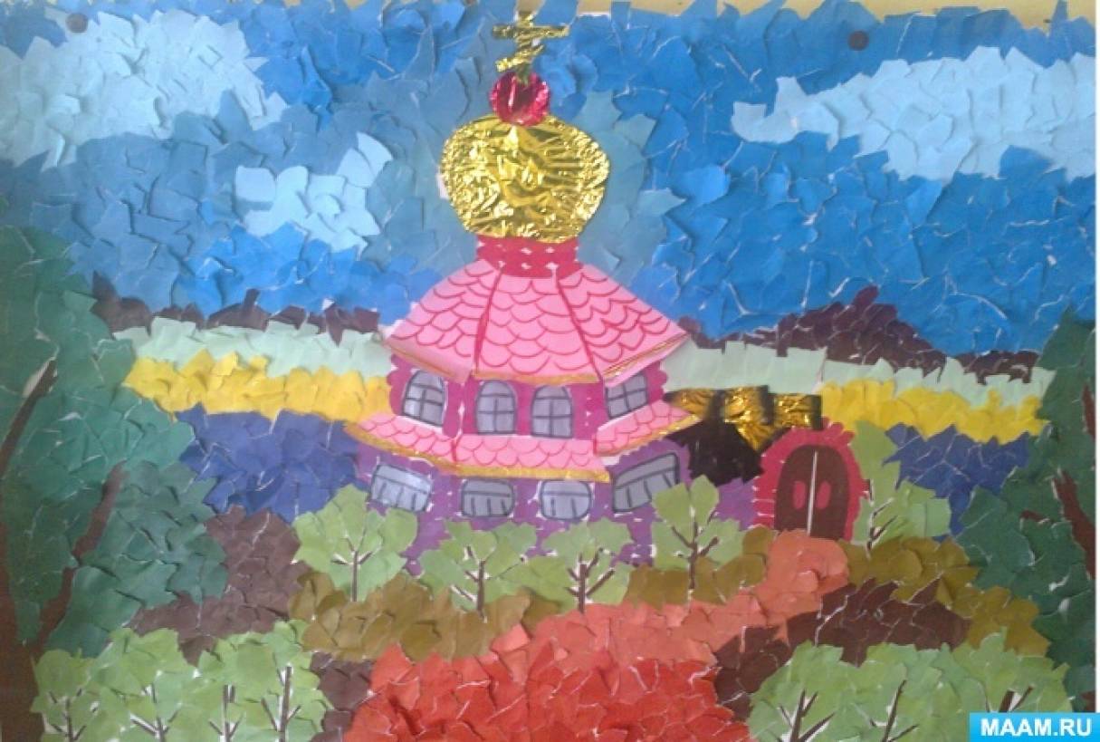Коллективная обрывная аппликация в подготовительной группе «Церковные колокола»